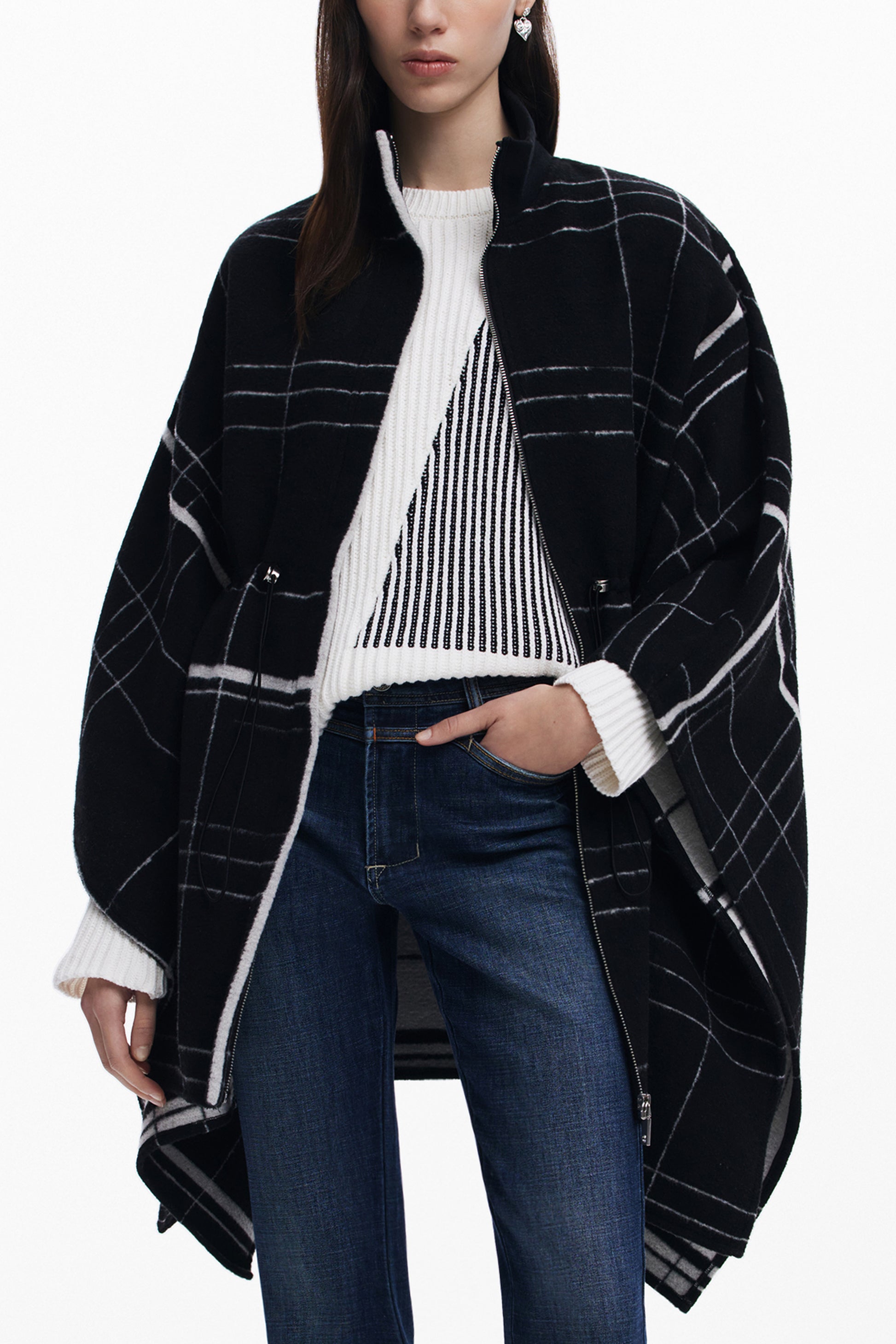 PONCHO, ALDAMA CUADROS, KONTRASTIERENDE DETAILS, REISSVERSCHLUSS UND KORDELZUG, LOGO